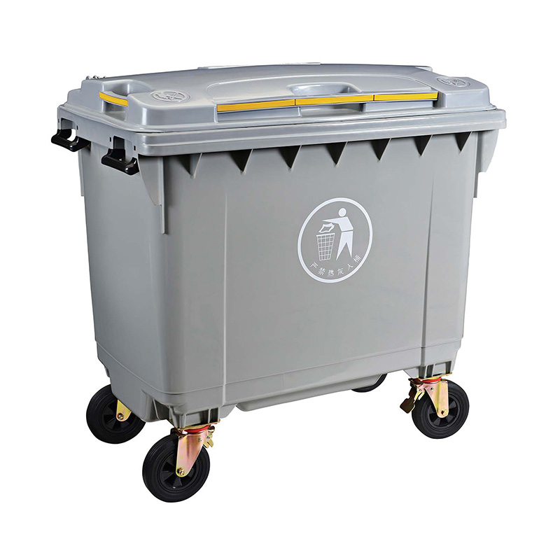 带轮式塑料垃圾箱移动方便,使工人在拖运垃圾箱时更加轻松;