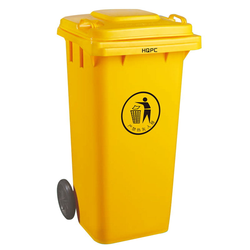 带轮式塑料垃圾箱移动方便,使工人在拖运垃圾箱时更加轻松;