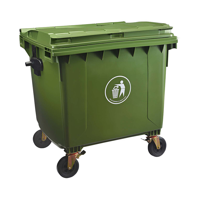 带轮式塑料垃圾箱移动方便,使工人在拖运垃圾箱时更加轻松;