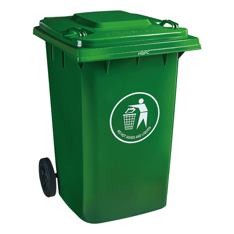 带轮式塑料垃圾箱移动方便,使工人在拖运垃圾箱时更加轻松;