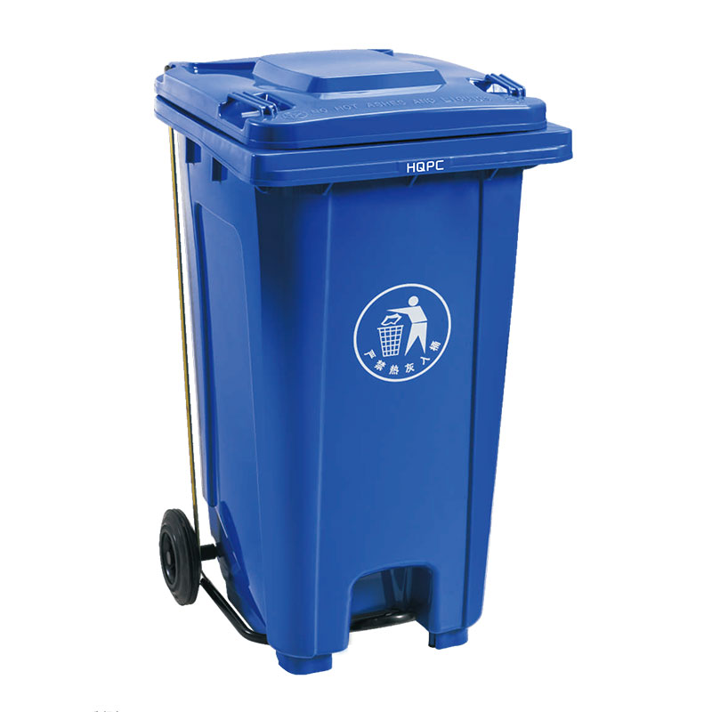 带轮式塑料垃圾箱移动方便,使工人在拖运垃圾箱时更加轻松;